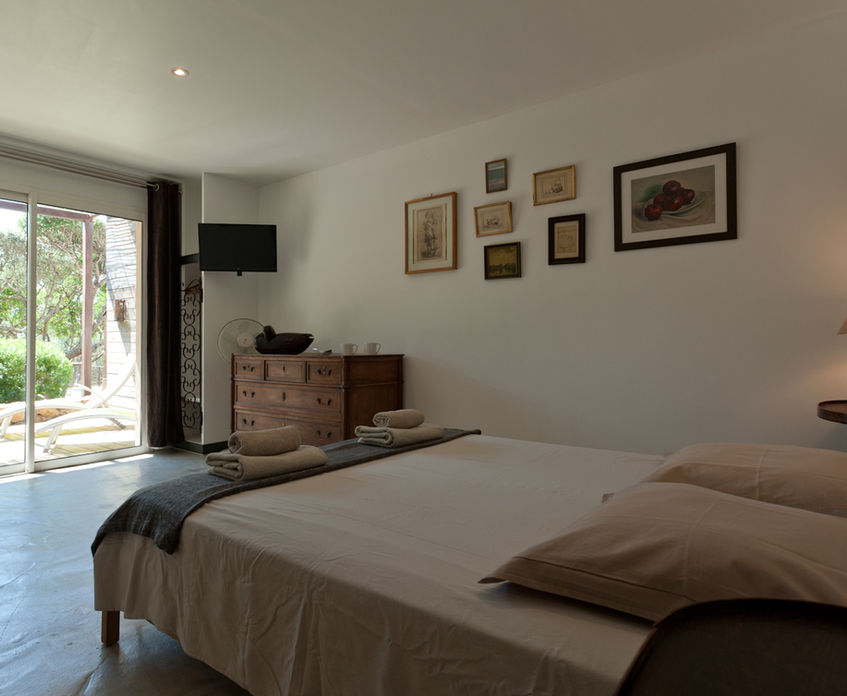 Elle dispose d'un lit de 160cm et d'un lit simple en 90cm. D'une salle de bain avec douche italienne et WC. Sa terrasse privative de 15 m² fait face aux oliviers et un chemin en pierre vous mènera directement à la piscine.
